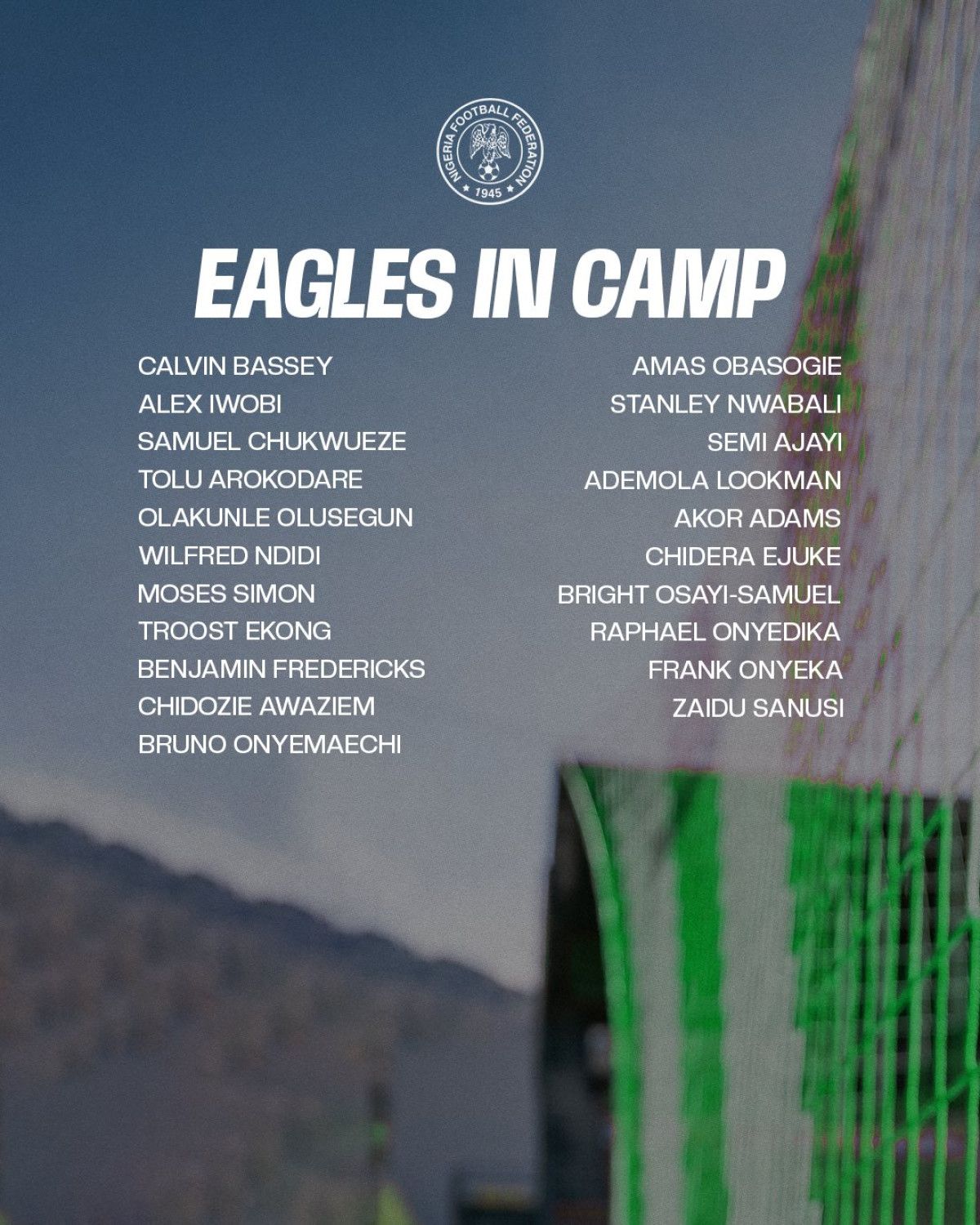 Nijerya Futbol Federasyonu, 2026 Dünya Kupası Afrika Elemeleri için kampa çağrılan 21 oyuncunun listesini sosyal medya hesaplarından paylaştı.