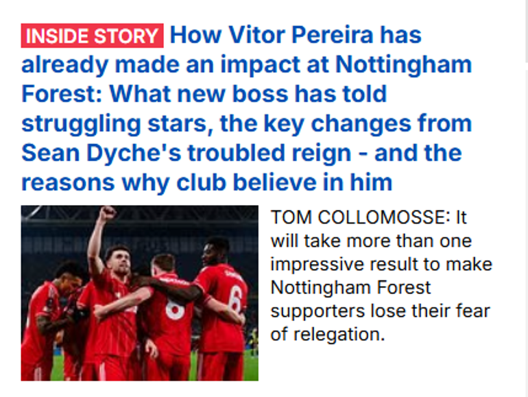 DAILY MAIL: Vitor Pereira’nın mükemmel başlangıcı: Yeni Nottingham Forest teknik direktörü, Fenerbahçe’yi darmadağın etti. Sezon boyu saha içi ve saha dışında sık sık dağınık bir görüntü sergileyen Forest, İstanbul’da unutulmaz bir performans sergiledi, pahalı bir kadroyla sahaya çıkan Fenerbahçe’yi bozguna uğrattı.