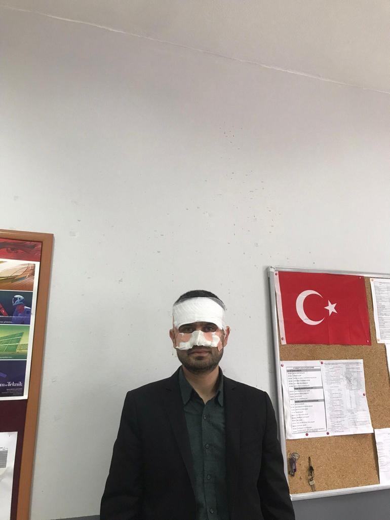 Fizik öğretmeni Serkan Keskinbaş, “Akabinde bana iki tane ağır küfür etti, ağza alınmayacak, Ben kendisine kesinlikle sözlü olarak onun aynı dilinden cevap vermedim. Daha sonra çıkması için şöyle kendisini savurdum. Ondan sonra elindeki sıcak çayı benim yüzüme doğru fırlattı. Bardağı fırlatmadı. Sadece içerisindeki kaynar çayı yüzüme kasıtlı olarak fırlattı ve beni haşladı. Emniyetten de geldiler, fotoğraflar çekildi. Benim odamda komple çay izleri var. Kendisi “Arbede sırasında yaşandı” şeklinde savunmaya geçiyormuş. Ama öyle değil. Beni yaralamaya yönelik ve yüzümü hedef alarak sıcak kaynar çayı yüzüme doğru fırlattı. Çok şok oldum bu durum karşısında” dedi.