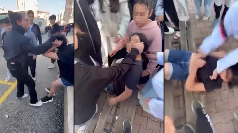 Öğrencinin şiddete uğradığı anların yer aldığı görüntülerde; kız ve erkek öğrenci grubunun bir kız öğrenciyi tehdit ettikten sonra tekme ve yumruk attığı, yere düşürüp tekmeledikleri ve saçından sürüklediği anlar yer aldı.