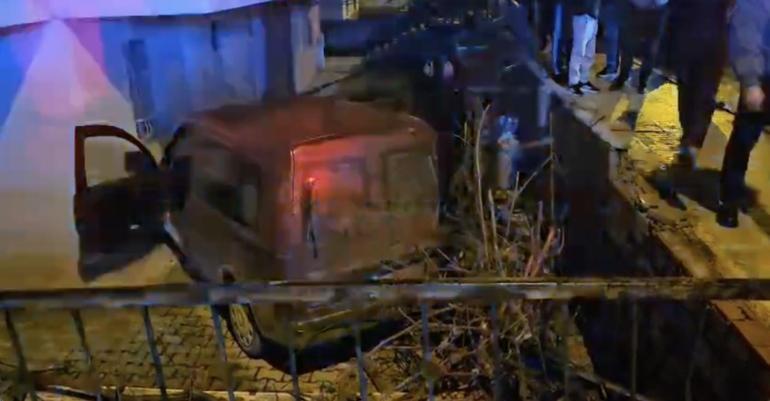 Otomobille çarpışan hafif ticari araç apartman boşluğuna savruldu: 2 yaralı