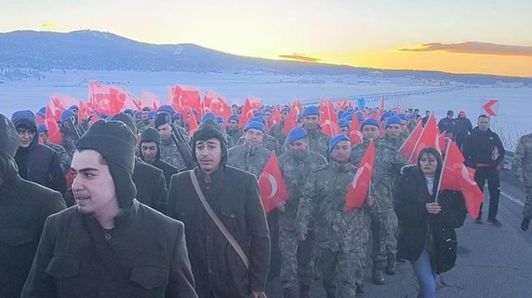 Kafkas Üniversitesi (KAÜ) Sarıkamış Meslek Yüksek Okulu önünde toplanan öğrenciler ve protokol üyeleri ellerinde Türk bayraklarıyla Alisofu Şehitlik Anıtı’na yürüdü. Yaklaşık 4 kilometrelik yürüyüşe katılanlar şehitlikte saygı duruşunda bulundu ve İstiklal Marşı okudu. O dönemde yaşanılan zorlukları hissetmek adına asker kıyafeti giyen öğrenciler, değişimli olarak temsili saygı nöbeti tutarak, nöbet değişimi gerçekleştirdi. Hava sıcaklığının sıfırın altında 10 derece olduğu ilçede düzenlenen tören Kur’an-ı Kerim tilaveti ve duaların ardından sona erdi.