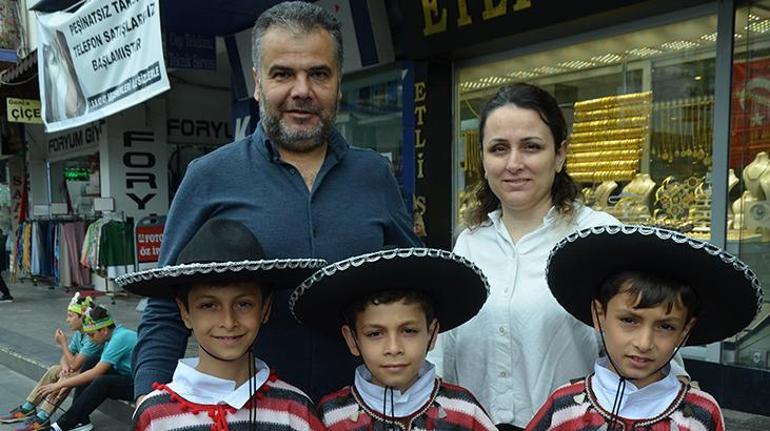 Antalya’nın Serik ilçesinde Akçaalan İlköğretim Okulu 3’üncü sınıf öğrencileri 9 yaşındaki Emir, Yiğit ve Yağız Tunç adlı üçüzler, Cumhuriyet Meydanı’nda düzenlenen 23 Nisan etkinliklerine katıldı. Kardeşler hem giydikleri kovboy kıyafetleri eşliğinde sundukları gösterileri hem de üçüz olmalarıyla vatandaşların ilgisini çekti.