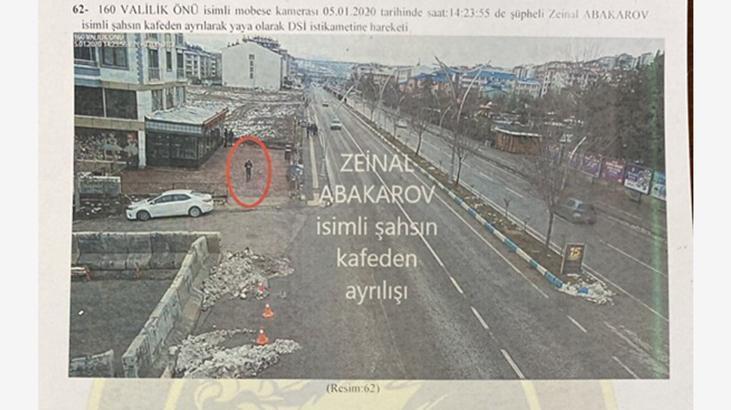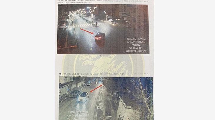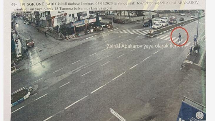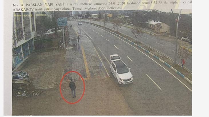 Alparslan yapı sabit isimli KGYS kamerasında 05.01.2020 tarihinde saat 15:23:55’te şüpheli Zeinal Abakarov isimli şahsın yaya olarak Tunceli merkez istikametine doğru ilerlemesi.68. 191 SGK önü sabit isimli KGYS kamerasında 05.01.2020 tarihinde saat 15:36:30’da şüpheli Zeinal Abakarov isimli şahsın yaya olarak Tunceli merkez istikametine doğru ilerlemesi.