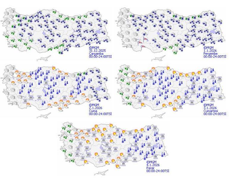 1 Ocak Perşembe günü ise İstanbul’da en düşük hava sıcaklığının eksi 1 dereceye kadar gerilemesi, günün en yüksek sıcaklığının ise 4 derece civarında olması bekleniyor.
