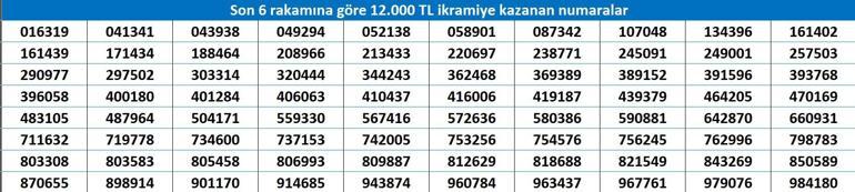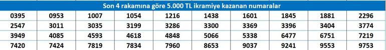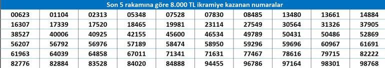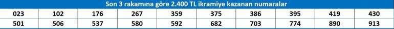 SON 2 RAKAMINA GÖRE 1600 TL KAZANAN NUMARALAR