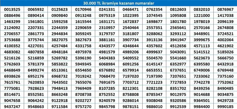 Tüm ikramiye kategorilerinde, son rakamları kazanan numaralardan biriyle eşleşen biletler, ilgili ikramiyeyi kazanır.