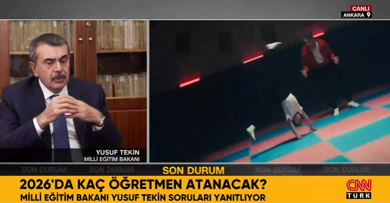 24 Kasım Öğretmenler Günü kapsamında, Milli Eğitim Bakanı Yusuf Tekin, Ankara’daki Bahçelievler Deneme Anadolu Lisesi’nden CNN Türk’e bağlanarak öğretmenlerle bir araya geldi. Bakan Tekin, yayında öğretmenlerin gününü kutladı ve eğitim alanında yapılan çalışmalar hakkında bilgiler verdi.