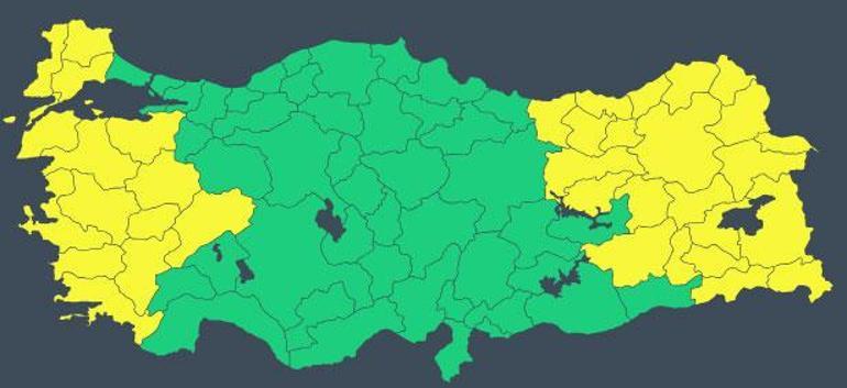 Bakanlıktan apılan açıklamaya göre, Afyonkarahisar, Ağrı, Ardahan, Artvin, Aydın, Balıkesir, Batman, Bayburt, Bingöl, Bitlis, Bursa, Çanakkale, Denizli, Diyarbakır, Edirne, Erzincan, Erzurum, Giresun, Gümüşhane, Hakkari, Iğdır, İzmir, Kars, Kırklareli, Kütahya, Manisa, Muğla, Muş, Rize, Siirt, Şırnak, Tekirdağ, Trabzon, Tunceli, Uşak ve Van için “sarı” kodlu meteorolojik uyarı yapıldı.