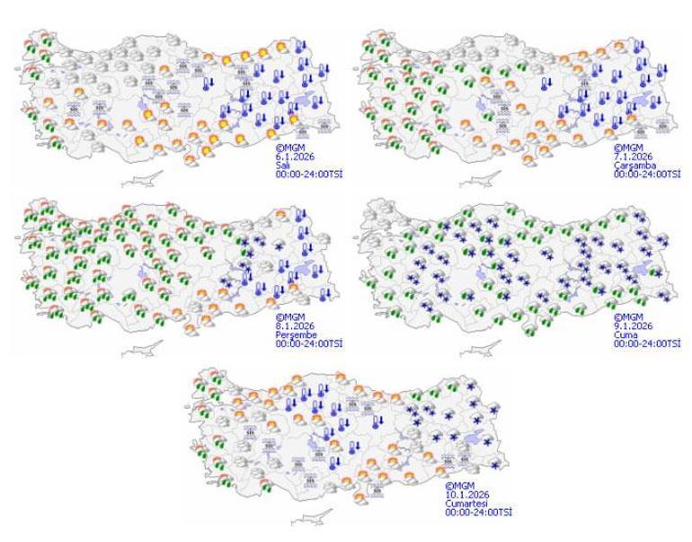 Meteoroloji ve AKOM’un verdiği verilere göre cuma günü karla karışık yağmur önümüzdeki pazartesi günü kar ve karla karışık yağmur görülecek. Öte yandan cuma gününe yurdun büyük bölümünde kar yağışı bekleniyor.