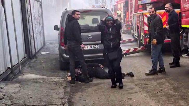 Osman Yıldırım isimli bir vatandaş, “Yabancı uyruklular yaşıyor. 5 kişi yaşıyor. Biri camı kırarak aşağı atladı. Eşiyle birlikte ambulansa gönderdik.” diye konuştu.