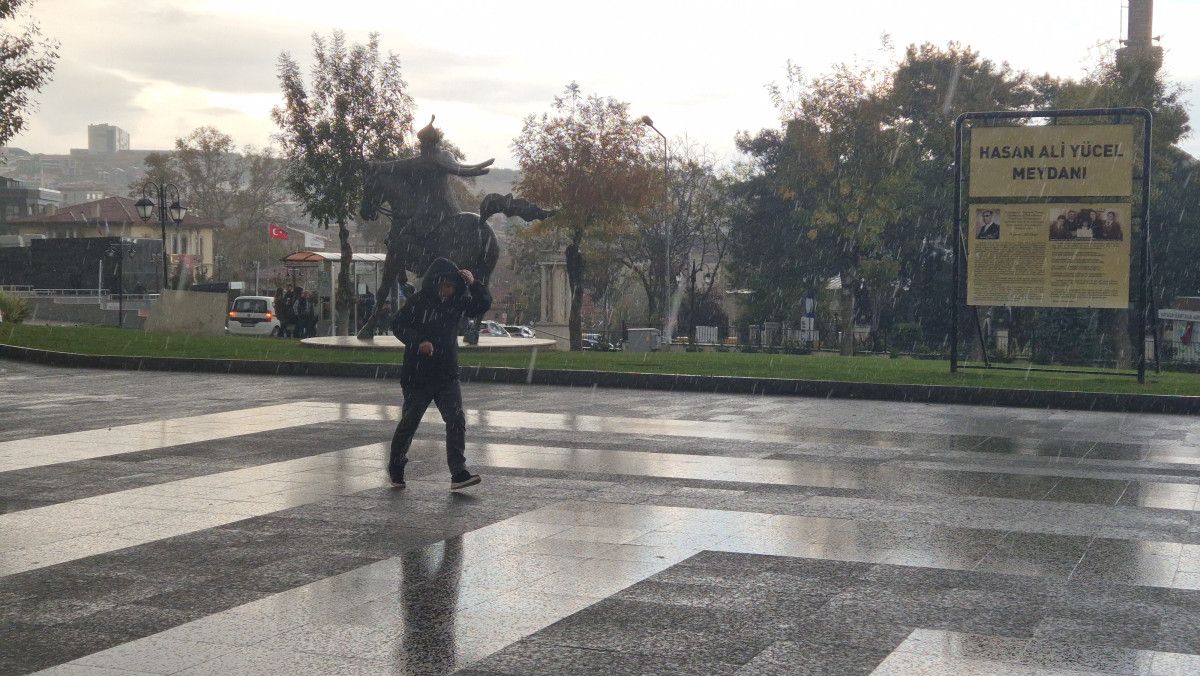 Yağışa hazırlıksız yakalanan vatandaşlar, bina altları, otobüs durakları ve dükkan tentelerinin altına sığınarak yağmurdan korunmaya çalıştı.