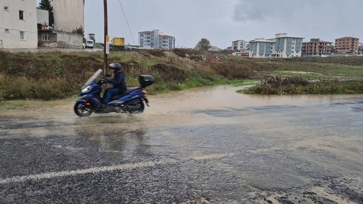 İlçede aniden bastıran yağış nedeniyle cadde ve sokaklarda su birikintileri oluştu. Altyapı yetersizliği bazı yolların dereye dönüşmesine yol açarken, bazı araçlar ilerlemekte güçlük çekti.