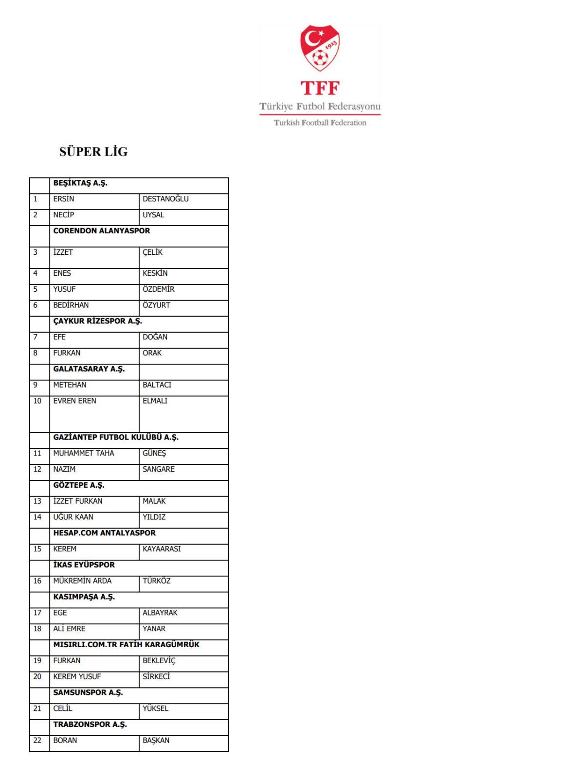 Futbol Disiplin Talimatı’nın 57. maddesi uyarınca PFDK’ya sevk edilen 1024 futbolcu aşağıda yer almaktadır.