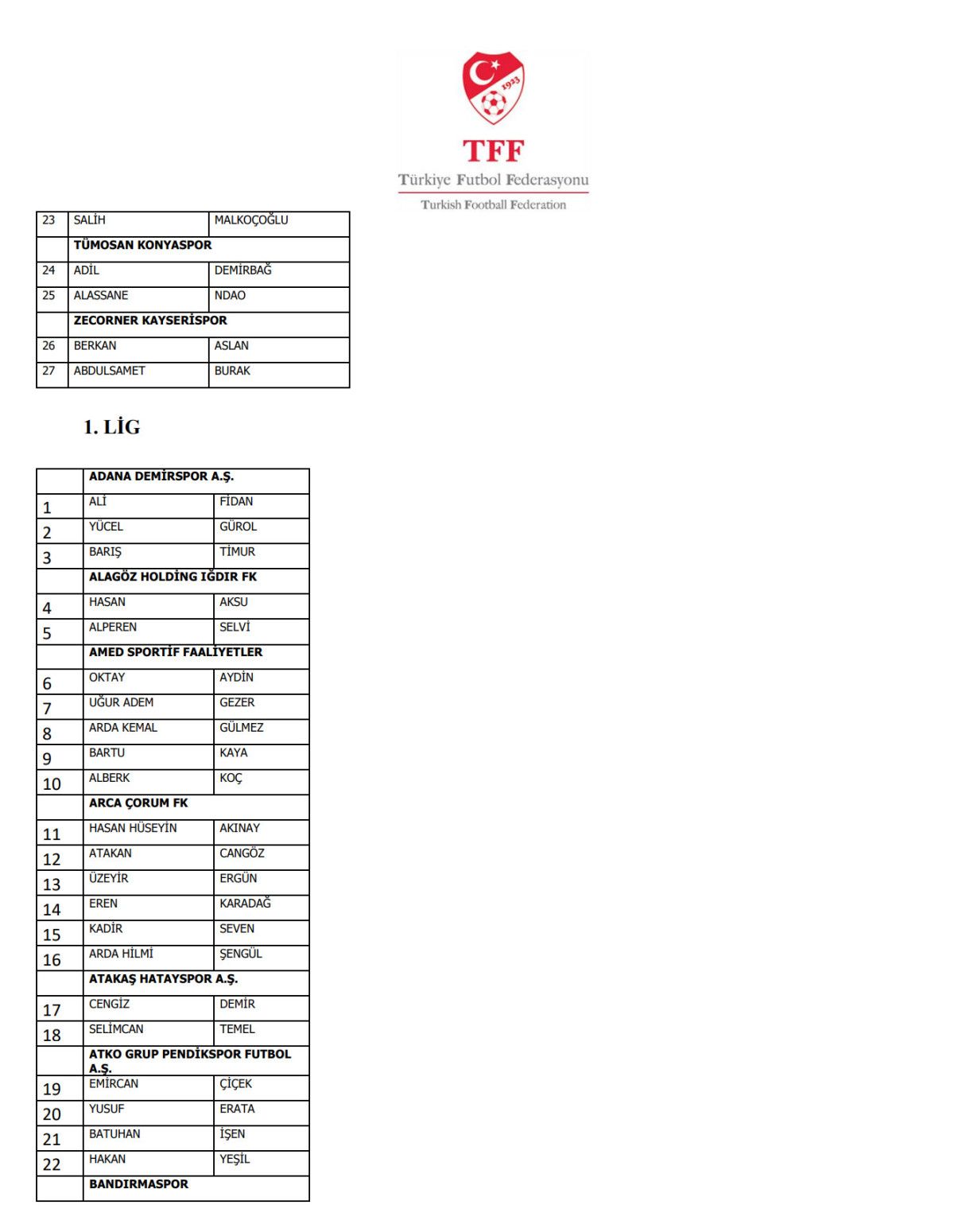 Futbol Disiplin Talimatı’nın 57. maddesi uyarınca PFDK’ya sevk edilen 1024 futbolcu aşağıda yer almaktadır.