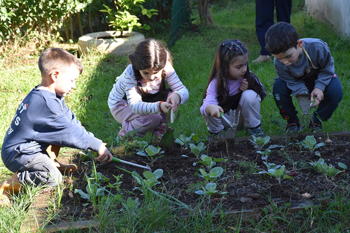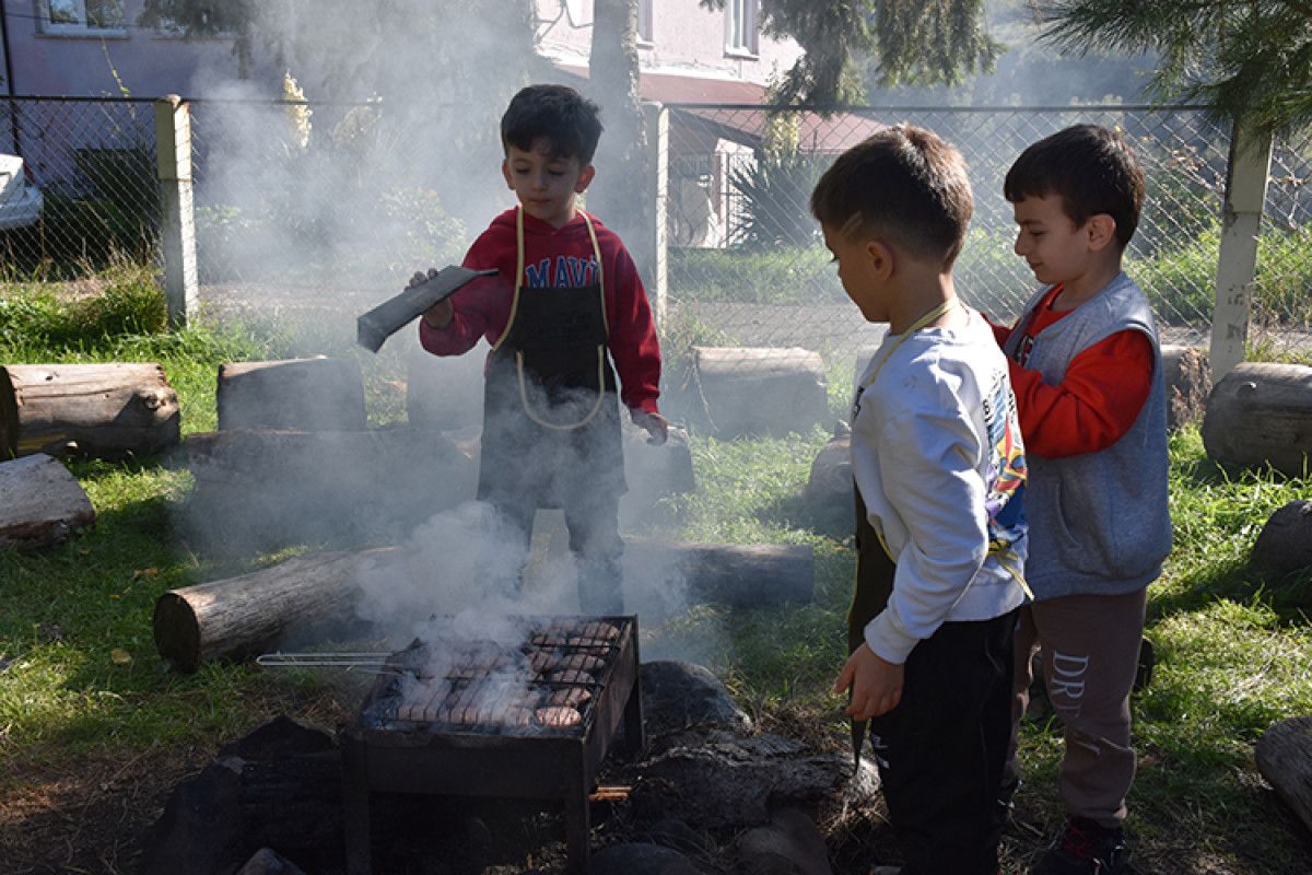 Minik Kalpler Anaokulu’nun 25 öğrencisi de merkeze gelerek taş değirmende mısır unu yapımı, bahçede fide dikimi, odun kesme ve atölye çalışmaları gibi pek çok etkinliği deneyimledi.