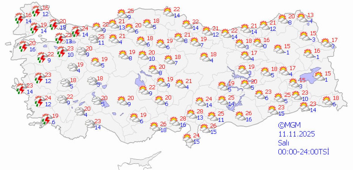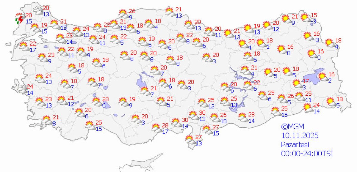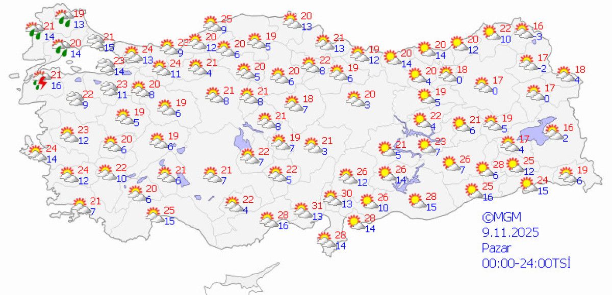 Türkiye genelinde hafta sonu yağış beklenmiyor. İstanbul ve Ankara’da sıcaklık 20 ila 21 derece, İzmir’de ise 23 ila 24 derece civarında olacak.