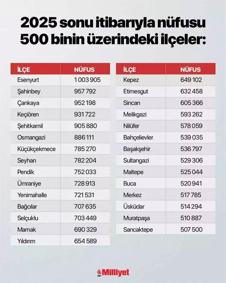 TÜİK’in 2025 Adrese Dayalı Nüfus Kayıt Sistemi verilerine göre bir ilçe 160 bin 136 kişilik nüfusuyla Türkiye’nin en kalabalık mahallesi unvanını sürdürmeyi devam ettiriyor. İşte o mahalle…