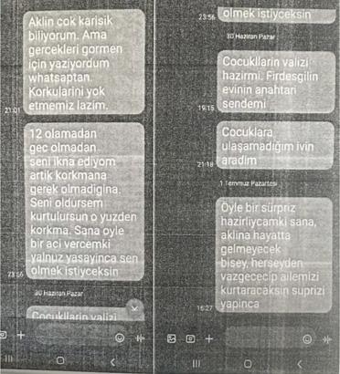 Savcılığa dosyayı almaya gittiğinde Murat Keklik’in mesajını dosyada gördüğünü ifade eden Yıldız, “Katil bana ‘Sana öyle bir sürpriz yapacağım ki ölmeyi sen isteyeceksin, yalnız kaldığında’ mesajını göndermiş. O bana acı çektirmek istiyordu ve nereden acı çektireceğini de çok iyi biliyordu. Biliyordu benim çocuklarıma ne kadar düşkün olduğumu. Ben onun o kadar cani olabileceğini düşünmedim. Babaları çocuklarımın katili oldu” dedi.4
