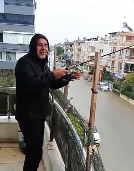 Ünlü tatil beldesinde yollar göle dönünce balkonundan sokağa olta attı